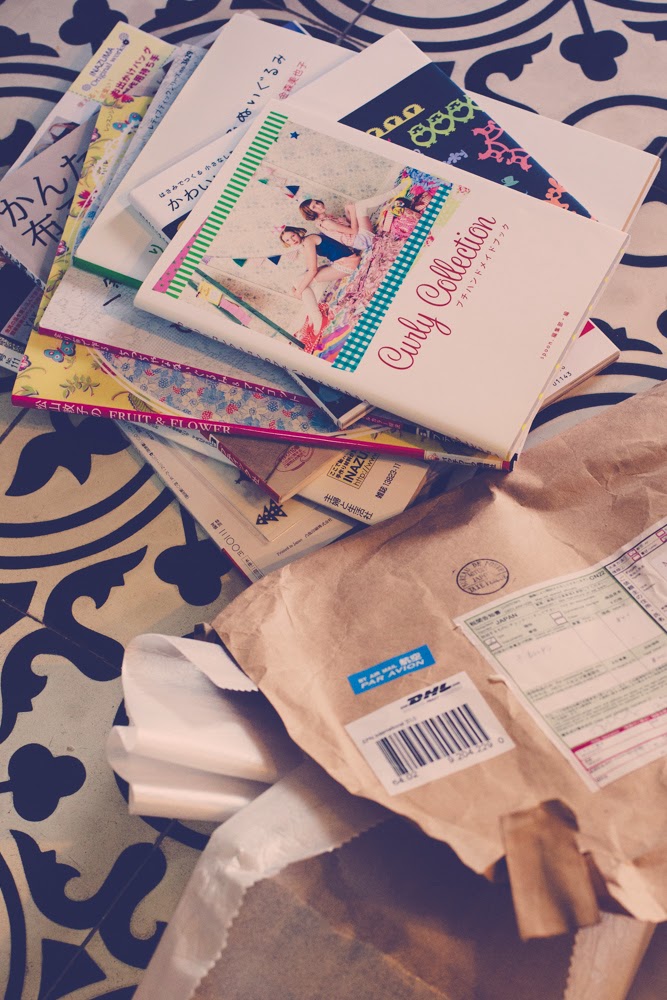 It is raining since three days, a lot! It seams that there is no break in between, just steady rain. So depressing! But then, there just was a knocking at my door and it was Marcel, our lovely postman! Dressed in a bright yellow rain coat he let me sign for a parcel. And not only for something electronic my husband ordered, nope, it was the highly anticipated shipment from japan with fresh books. Did I tell you before that I love Etsy so much? If not, here it is: I love you Etsy! I can order all these incredible Japanese crafting books with you and they arrive only 2 weeks later! Well guys, I am sitting back on my sofa now, with a bunch of books around me. Trust me, you can get inspired even on a rainy day