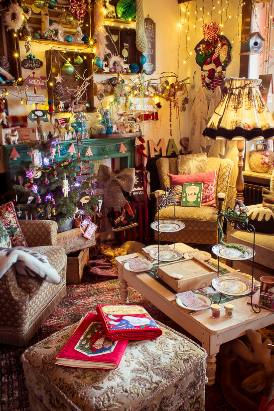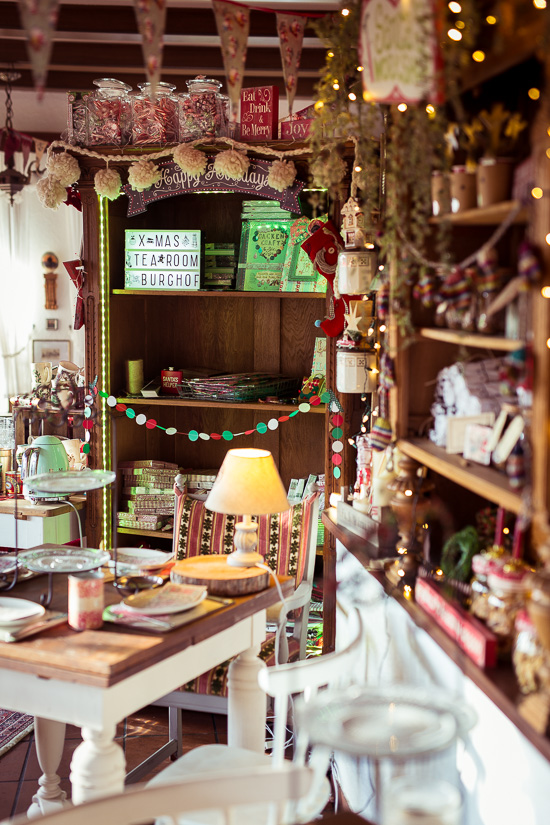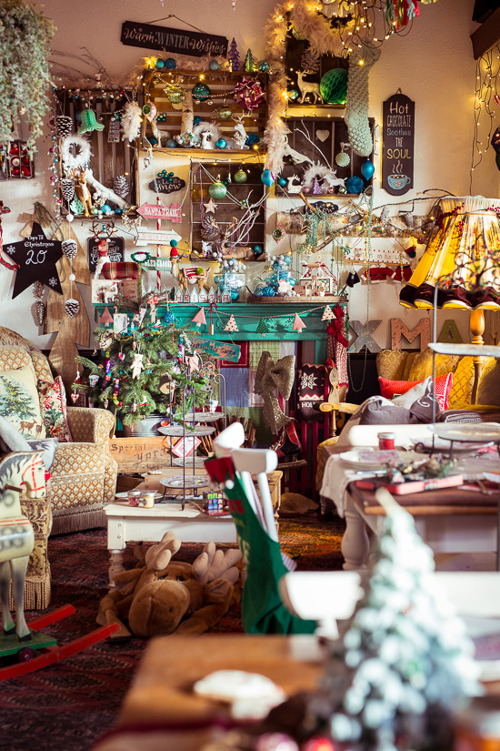 So, das Weihnachtswinterwonderland ist aufgebaut und im Cafe Burghof schaut es nun wirklich wie bei mir zuhause in der Weihnachtszeit aus. Überall blinken Lichterketten, die Tische sind gedeckt mit Weihnachtsgeschirr, der Christbaum steht geschmückt am Kamin, es ist tatsächlich so geworden wie ich es mir auch immer vorgestellt habe. Es sollte ja alles total gemütlich und kuschelig werden, mit ganz vielen neuen Deko- und Craftideen, toll arrangiert und auf der Etagere ganz viele neue Leckereien. Es ist vollbracht und ich bin megastolz wie es geworden ist. Vielleicht kommst Du ja vorbei um das Ganze live zu erleben? Ich freue mich drauf!
